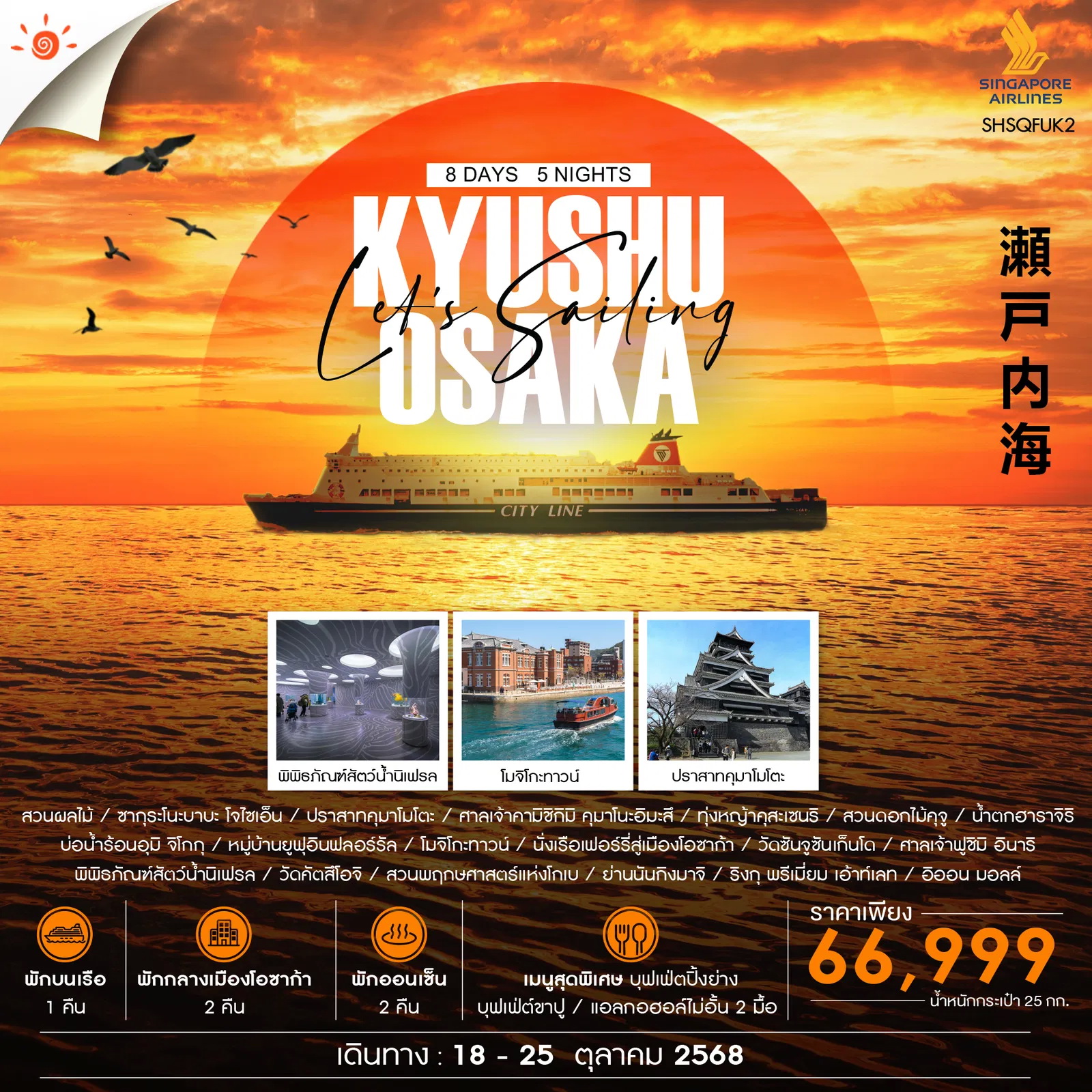 สนามบินนานาชาติคันไซ - โกเบ พอร์ตทาวน์ - โกเบ ฮาร์เบอร์แลนด์ - โรงกลั่นสาเก - ปราสาทโอซาก้า - ย่านชินไซบาชิ